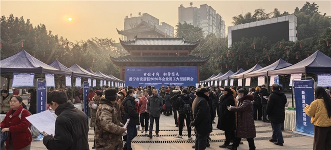 为持续优化营商环境,切实服务企业用工、促进群众就业,着力破解岁末年初企业用工紧张难题,充分利用春节期间大量务工人员返乡的有利时机,1月13日,由遂宁市安居区人力资源和社会保障局、区农民工服务中心、区总工会联合主办,区就业服务管理局、区人力资源市场具体承办的“百企千岗 职等您来”企业用工大型招聘会在安居区头陀寺广场成功举行。