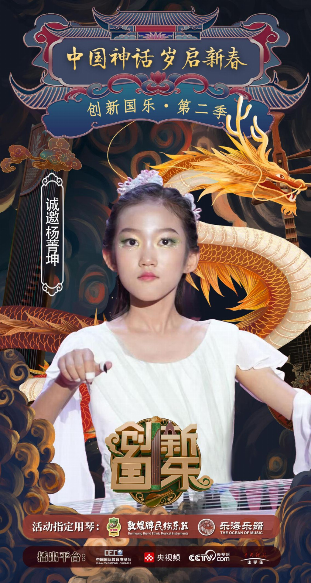 为持续推动中华优秀传统文化的创造性转化与创新性发展,打造具有时代气息的国乐精品,创新国乐第二季“中国神话 岁启新春”大型原创国乐盛典2026年2月8日在北京首钢园隆重启幕!在此,我们特别向学员杨菁坤发出正式演出邀请,期待她以更加成熟的技艺与表现力,与我们共同演绎华夏神话的壮丽诗篇。