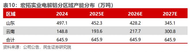另外,在将电解铝产能向云南转移过程中,山东原有产能的厂房和设备等难免会因停产引起固定资产减值。不过由于宏拓实业在2024年已制定2025-2027年的产能转移计划,这期间产能转移引起的减值基本已经在2024年提前充分计提,因此未来再因产能转移导致的资产减值影响预计将会控制在较小范围内。