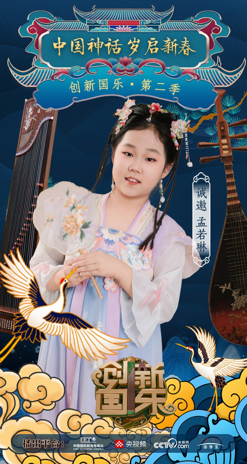 为持续推动中华优秀传统文化的创造性转化与创新性发展,打造具有时代气息的国乐精品,创新国乐第二季“中国神话 岁启新春”大型原创国乐盛典2026年2月8日在北京首钢园隆重启幕!在此,我们特别向学员孟若琳发出正式演出邀请,期待她以更加成熟的技艺与表现力,与我们共同演绎华夏神话的壮丽诗篇。