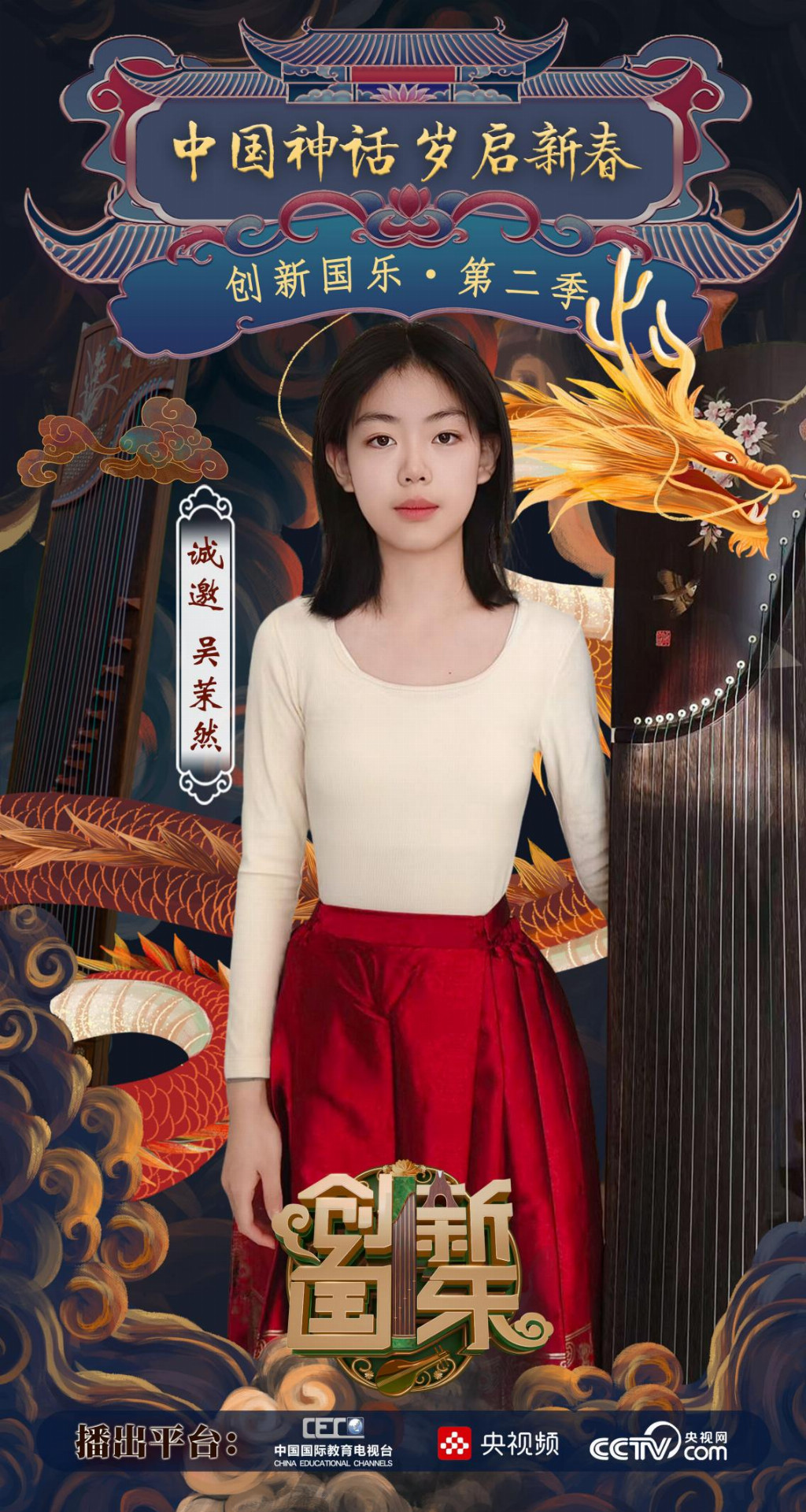 为持续推动中华优秀传统文化的创造性转化与创新性发展,打造具有时代气息的国乐精品,创新国乐第二季“中国神话 岁启新春”大型原创国乐盛典2026年2月8日在北京首钢园隆重启幕!在此,我们特别向学员吴茉然发出正式演出邀请,期待她以更加成熟的技艺与表现力,与我们共同演绎华夏神话的壮丽诗篇。