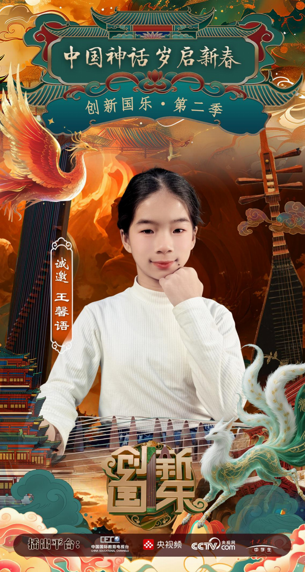 为持续推动中华优秀传统文化的创造性转化与创新性发展,打造具有时代气息的国乐精品,创新国乐第二季“中国神话 岁启新春”大型原创国乐盛典2026年2月8日在北京首钢园隆重启幕!在此,我们特别向学员王馨语发出正式演出邀请,期待她以更加成熟的技艺与表现力,与我们共同演绎华夏神话的壮丽诗篇。