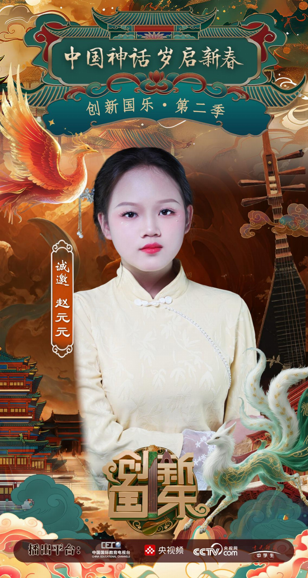 为持续推动中华优秀传统文化的创造性转化与创新性发展,打造具有时代气息的国乐精品,创新国乐第二季“中国神话 岁启新春”大型原创国乐盛典2026年2月8日在北京首钢园隆重启幕!在此,我们特别向学员赵元元发出正式演出邀请,期待她以更加成熟的技艺与表现力,与我们共同演绎华夏神话的壮丽诗篇。