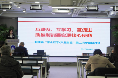 为提升律师服务先进制造业与新能源产业的专业能力与实务水平,2026年1月10日上午,市律协先进制造业与新能源产业专业委员会举办律企互学、产业赋能专题研讨会。本次会议以“产法双驱·智造领航”为主题,邀请中国航发西航原副总经理刘军作专题分享。市律协先进制造业与新能源产业专业委员会全体委员会参加了会议。会议由该委员会主任靳懿霏主持。