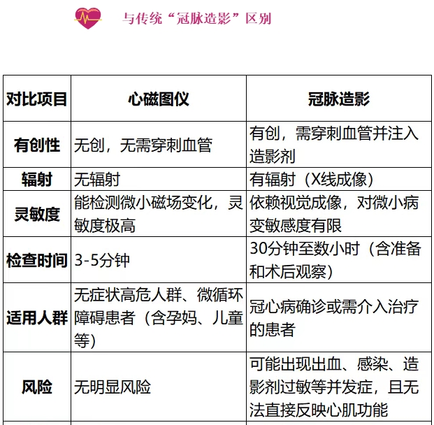心磁图仪具有四大优势,分别为:1、无创安全:无辐射、无药物、无接触,全程静音,适用人群广泛(孕妈、儿童及体内植有非磁金属者可做;2、精准高效:灵敏度极高,可检测冠脉狭窄程度<50%的早期心肌缺血,弥补心电图、CT等无创检查的不足;3、方便快捷:检查仅需3-5分钟,操作便捷;4、价格优势:进口心磁图仪检查费用4000到12000元不等,且要在特殊状态下使用,双丰盛丁医院心磁图检查的价格为几百元。