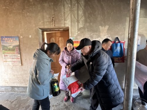 当天,董薇、林继刚、邵亚峰、王有平还在殿咀村入户走访慰问,向特困家庭送去了大米、面粉、菜籽油、羽绒服等生活物资,提前送上了新春佳节祝福!