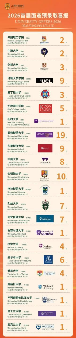 无非是砸钱、砸资源、砸宣传?但今年早申放榜,上海籽奥高中这匹“黑马”,直接甩出一张硬核成绩单:牛津、剑桥、帝国理工、纽大……100多封面试邀请,清一色世界名校。首届毕业生就有这势头,你猜它是靠运气,还是真有套路?