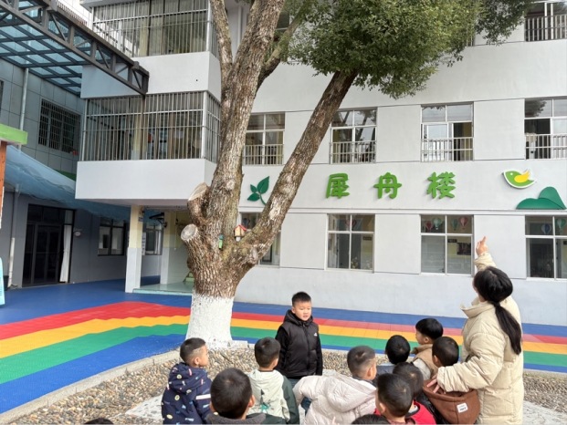 冬日来临,孩子们在散步时发现,幼儿园里的树木悄悄变了模样。他们触摸着粗糙冰凉的树干,仰望着光秃秃的树枝,童言稚语中流露出真切的关心:“大树会不会冷?”“我们能不能给它穿上衣服?”这份对自然的朴素关爱,成为了我们课程探索的起点。