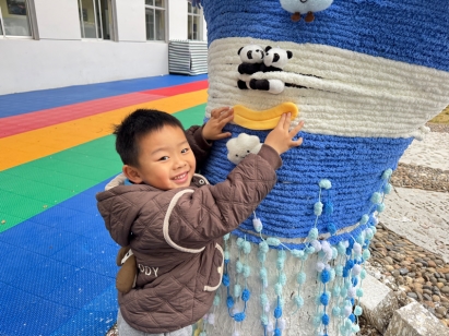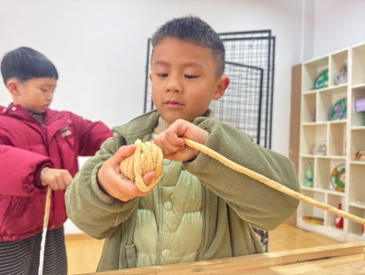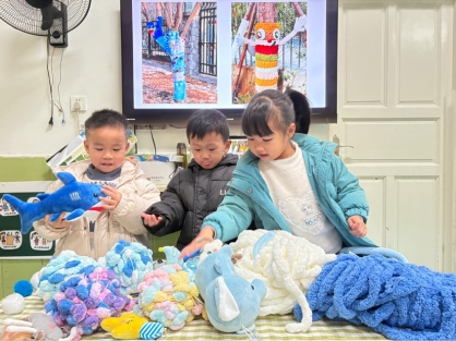 孩子们将设计变为现实,分组合作,运用毛线、布料等材料,细心为树干缠绕、编织。“要缠得紧一点,风就吹不进啦”,孩子们一边工作,一边与树木轻声对话。测量、缠绕、合作……都成为了生动的学习。