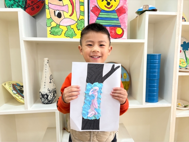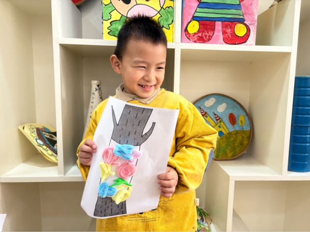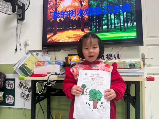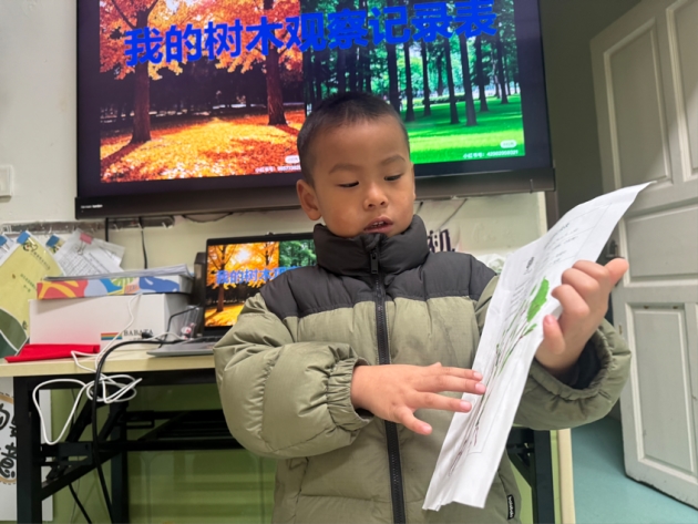 基于观察,孩子们化身为“小小设计师”,用画笔为大树朋友设计“冬装”。彩虹围巾、星星棉被、粉色纽扣……一幅幅设计图,承载着他们对保暖的理解、对美的表达,以及对生命的关怀。