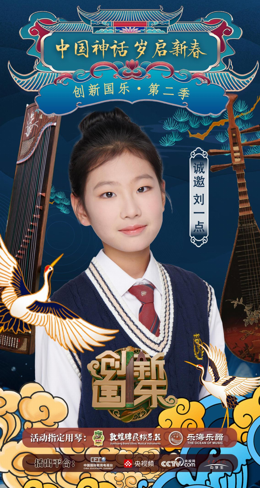 为持续推动中华优秀传统文化的创造性转化与创新性发展,打造具有时代气息的国乐精品,创新国乐第二季“中国神话 岁启新春”大型原创国乐盛典2026年2月8日在北京首钢园隆重启幕!在此,我们特别向学员刘一点发出正式演出邀请,期待她以更加成熟的技艺与表现力,与我们共同演绎华夏神话的壮丽诗篇。