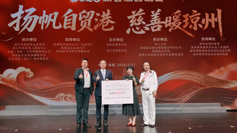 为庆祝海南自贸港全岛封关正式启动,1月17日,在海南省旅游和文化广电体育厅、海南省文学艺术界联合会的指导下,由海南省慈善总会、海口市慈善总会联合主办的“扬帆自贸港·慈善暖琼州”2026新春慈善晚会在海南省文化馆圆满举行。