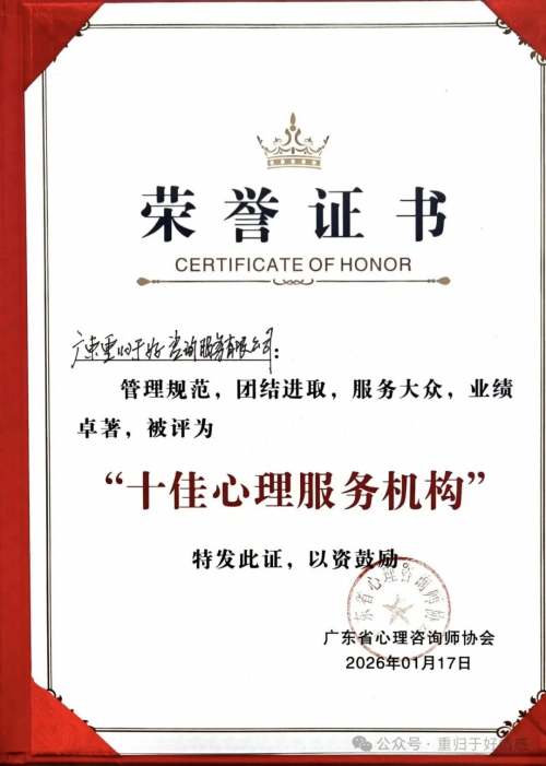 这一荣誉不仅是对过去成绩的嘉奖,更是对未来前行的鞭策。重归于好情感将以此为新起点,继续坚守“守护心理健康,助力幸福生活”的初心,不断提升服务品质,为更多有需要的个人与家庭提供更专业、更温暖的心理支持。