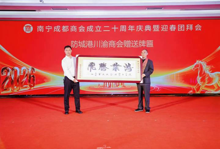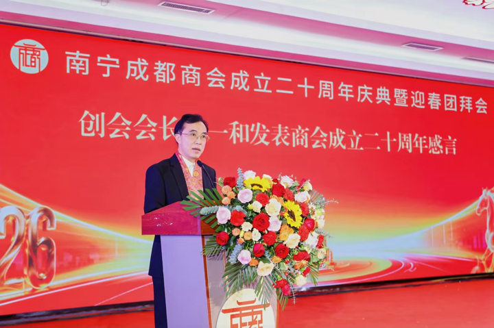 二十载春华秋实,二十载同心致远。南宁成都商会成立二十周年庆典暨迎春团拜活动的圆满举行,不仅回顾了辉煌历程、表彰了先进典型,更搭建了合作桥梁、凝聚了发展共识。未来,南宁成都商会将继续秉持公益初心与发展使命,以更昂扬的姿态深耕川桂合作,以更务实的行动践行社会责任,为推动两地经济社会高质量发展书写更加绚丽的篇章。