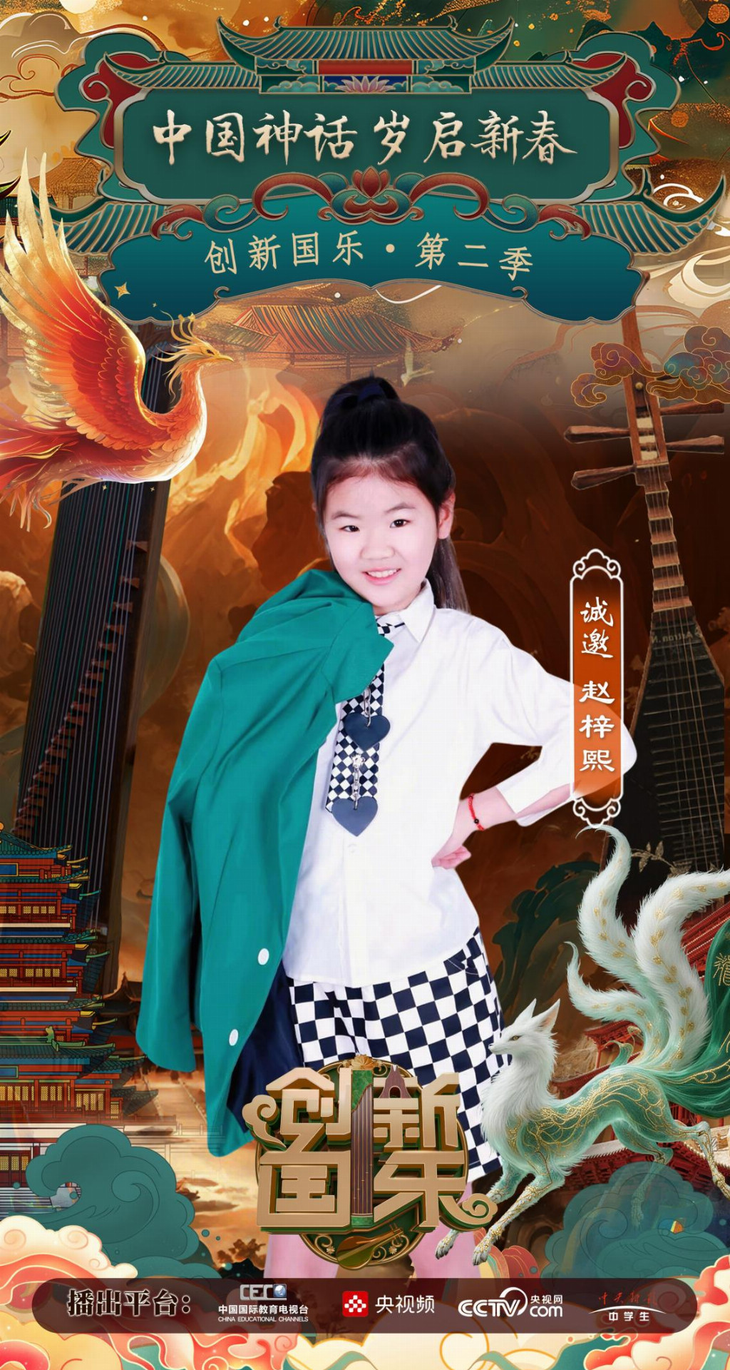 为持续推动中华优秀传统文化的创造性转化与创新性发展,打造具有时代气息的国乐精品,创新国乐第二季“中国神话 岁启新春”大型原创国乐盛典2026年2月8日在北京首钢园隆重启幕!在此,我们特别向学员赵梓熙发出正式演出邀请,期待她以更加成熟的技艺与表现力,与我们共同演绎华夏神话的壮丽诗篇。
