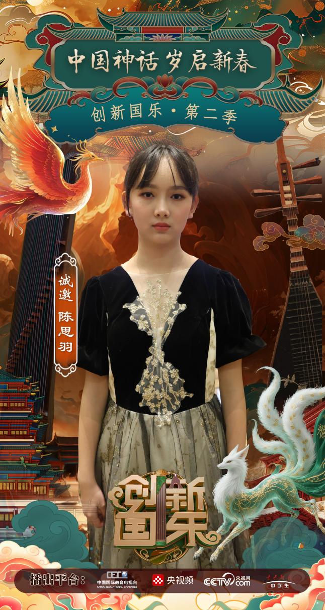 为持续推动中华优秀传统文化的创造性转化与创新性发展,打造具有时代气息的国乐精品,创新国乐第二季“中国神话 岁启新春”大型原创国乐盛典2026年2月8日在北京首钢园隆重启幕!在此,我们特别向学员陈思羽发出正式演出邀请,期待她以更加成熟的技艺与表现力,与我们共同演绎华夏神话的壮丽诗篇。