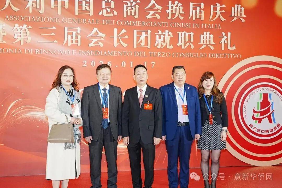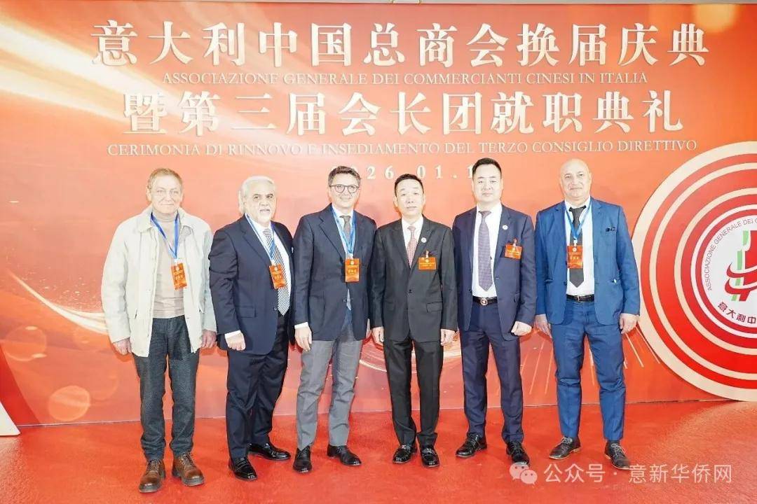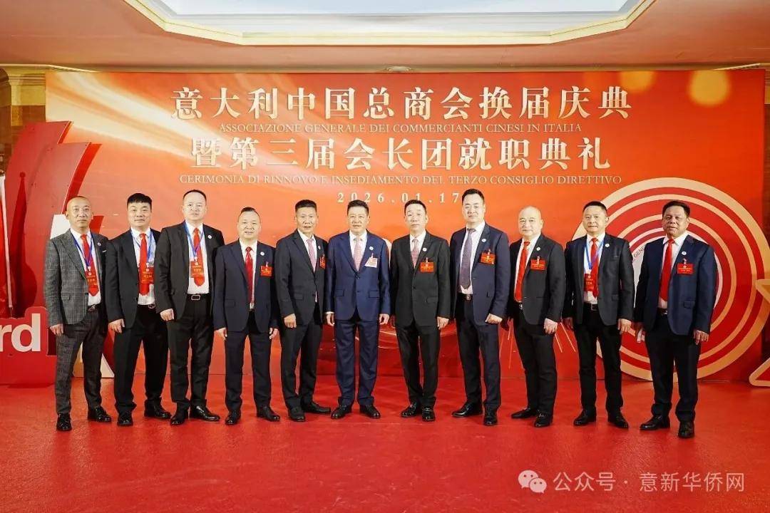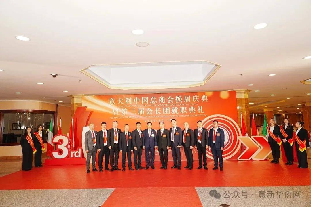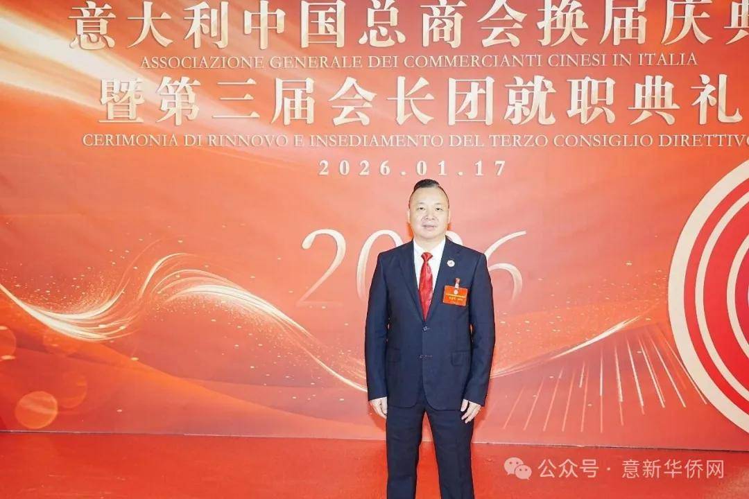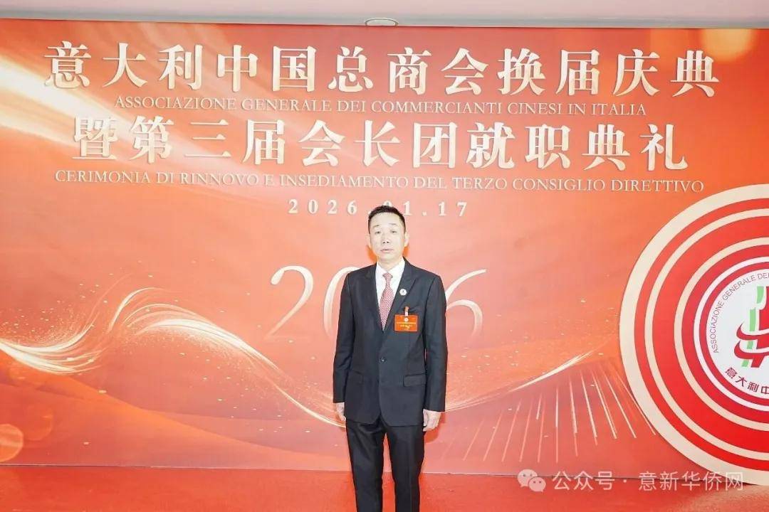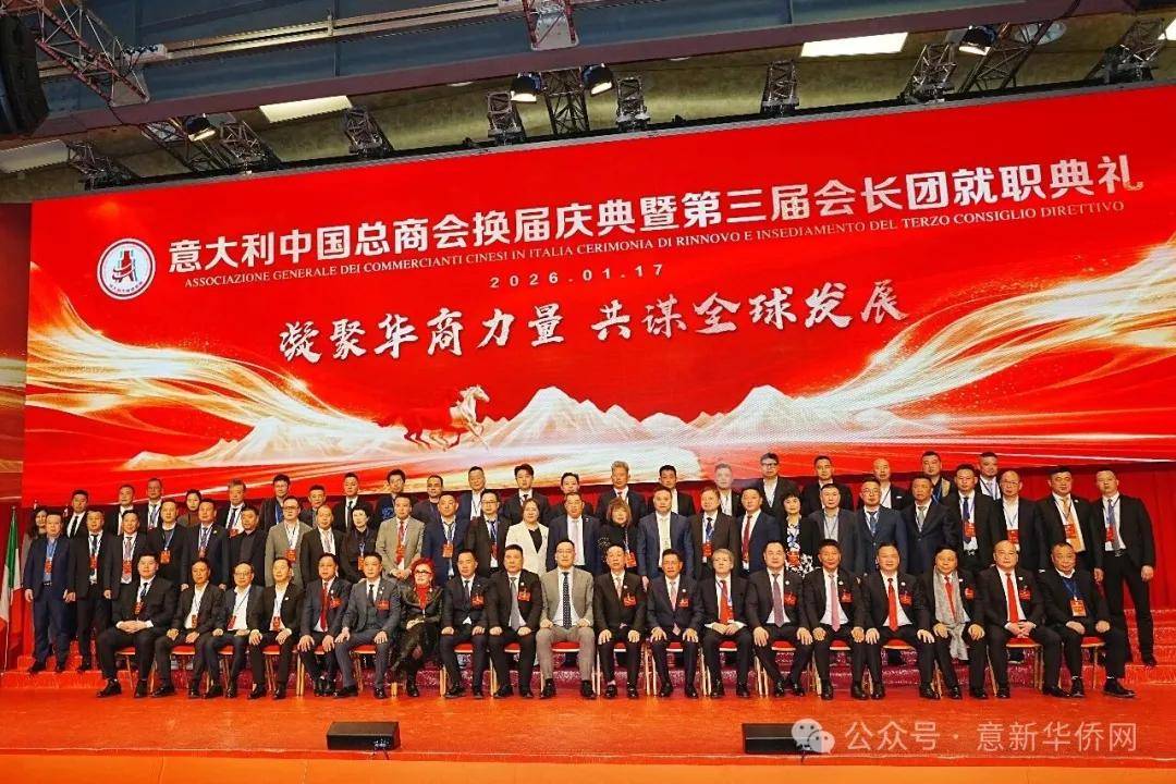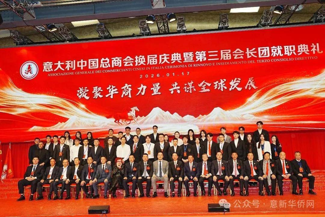 意大利新华时报金荣军报道:2026年1月17日,意大利中国总商会在罗马万豪大酒店举行换届庆典大会,林建芬先生荣任第三届会长。中国驻意使馆牟俊宏主任、刘佳鑫领事,罗马市市长顾问Marco Pacciotti 、意大利政府官员 Tiziana Biolghini 等意大利政要应邀出席活动。来自中国驻意使馆领区、米兰领区、佛罗伦萨领区的侨团侨领,以及来自欧洲多国的侨领代表,与会长团成员及家属、青年委员等共500余人齐聚一堂,共同见证这一重要时刻。