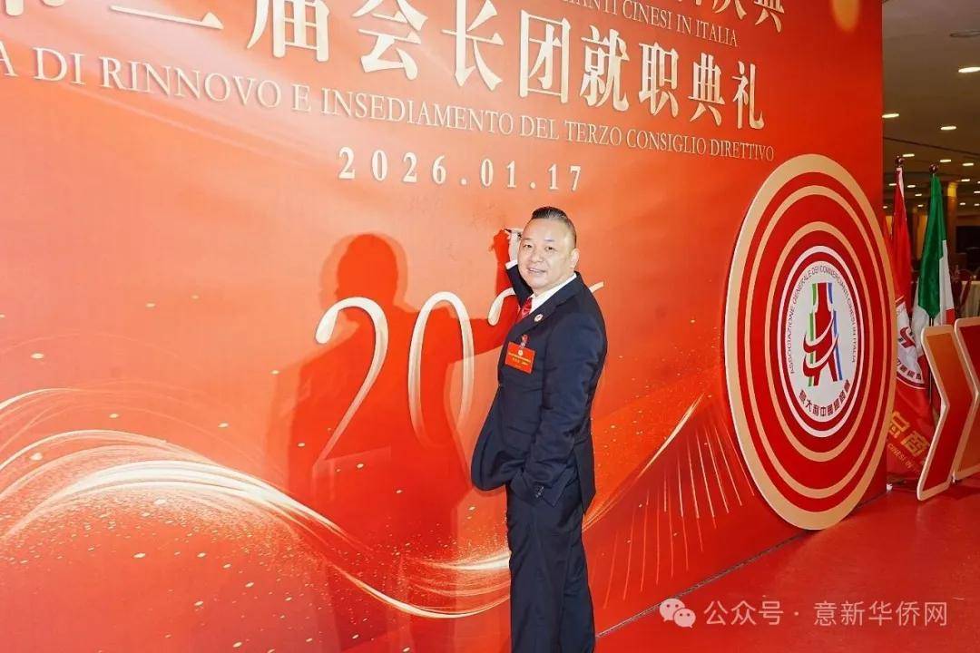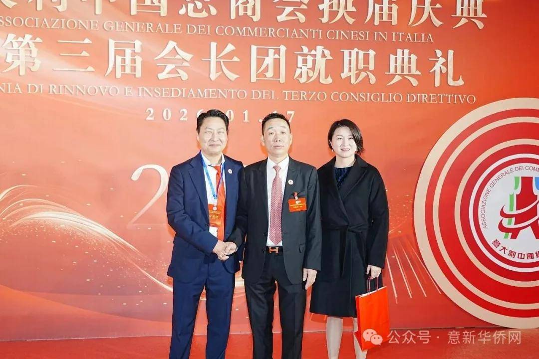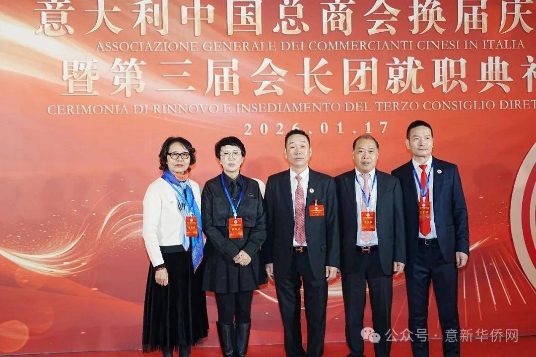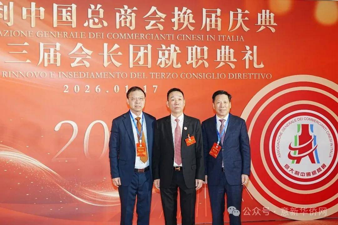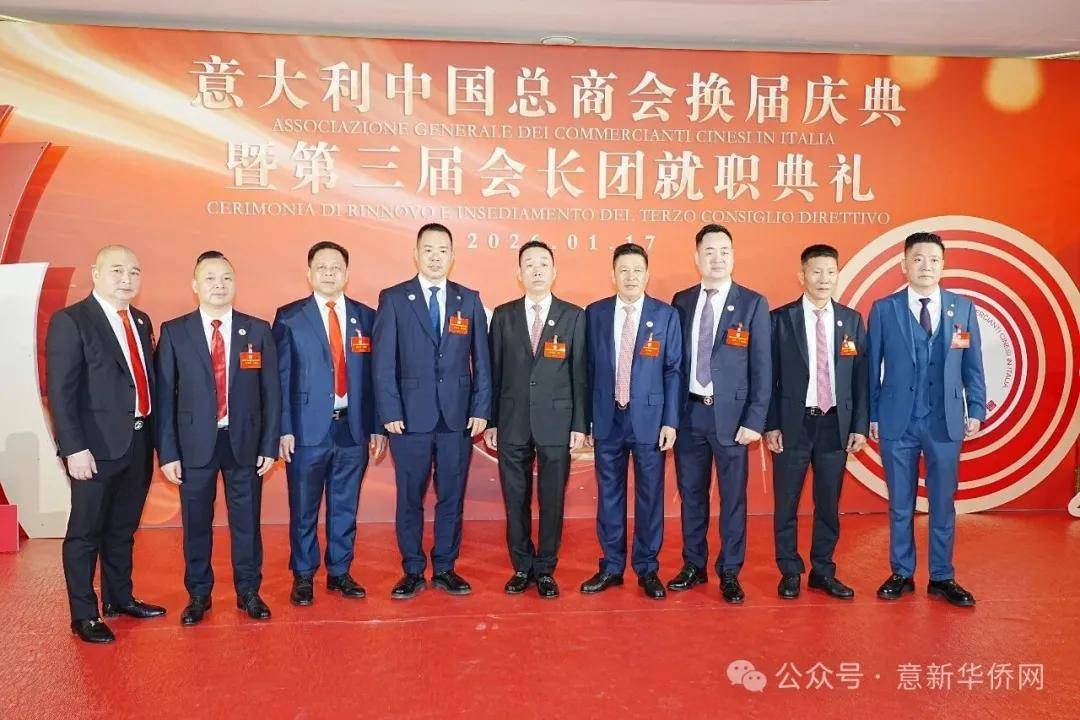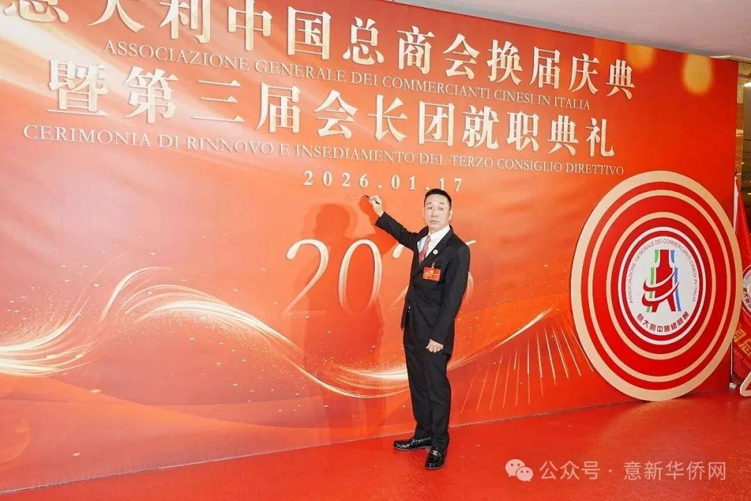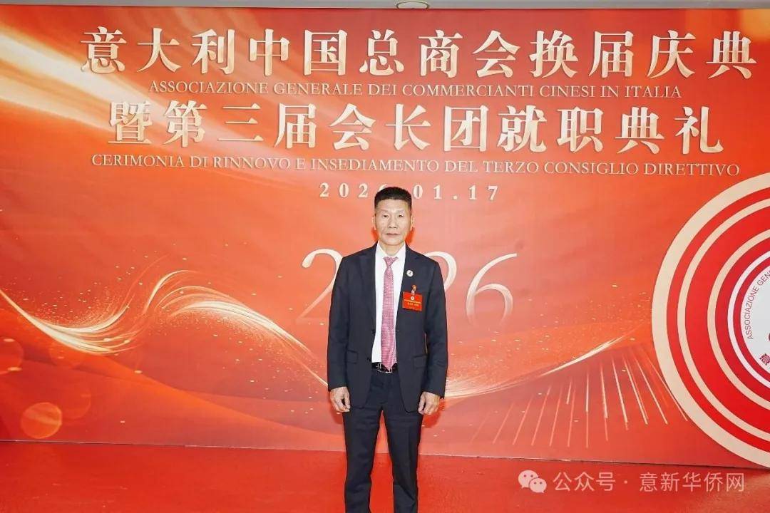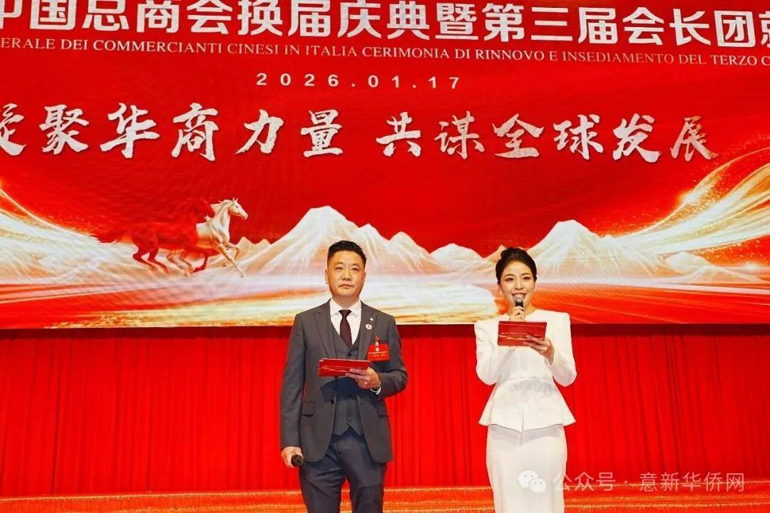 意大利新华时报金荣军报道:2026年1月17日,意大利中国总商会在罗马万豪大酒店举行换届庆典大会,林建芬先生荣任第三届会长。中国驻意使馆牟俊宏主任、刘佳鑫领事,罗马市市长顾问Marco Pacciotti 、意大利政府官员 Tiziana Biolghini 等意大利政要应邀出席活动。来自中国驻意使馆领区、米兰领区、佛罗伦萨领区的侨团侨领,以及来自欧洲多国的侨领代表,与会长团成员及家属、青年委员等共500余人齐聚一堂,共同见证这一重要时刻。