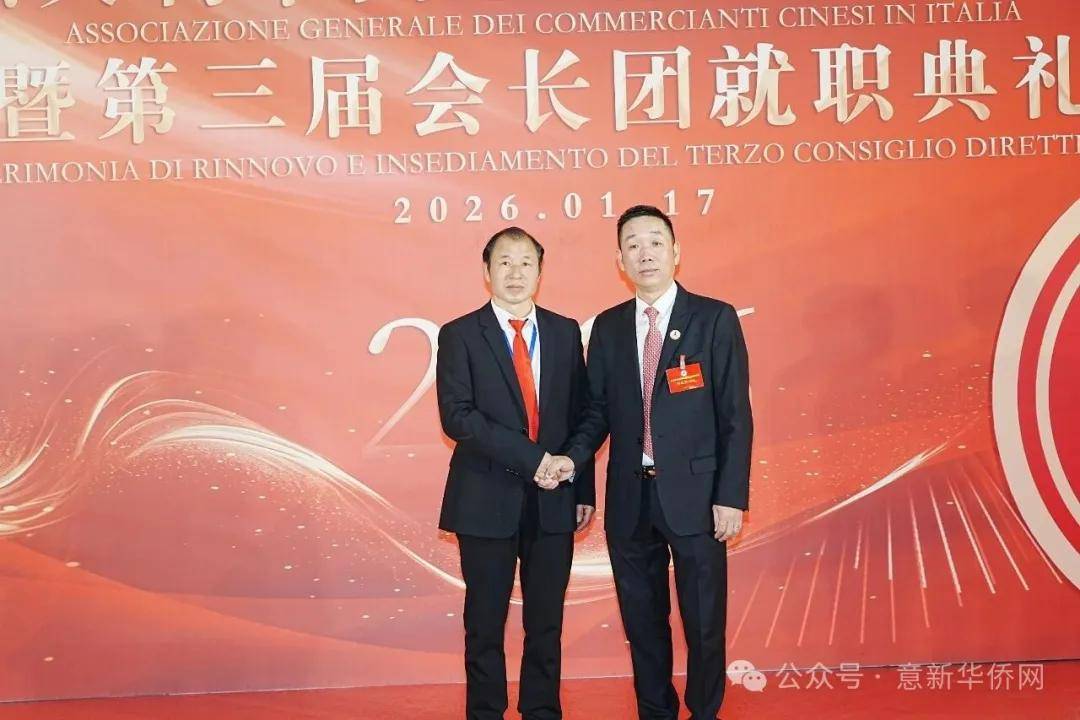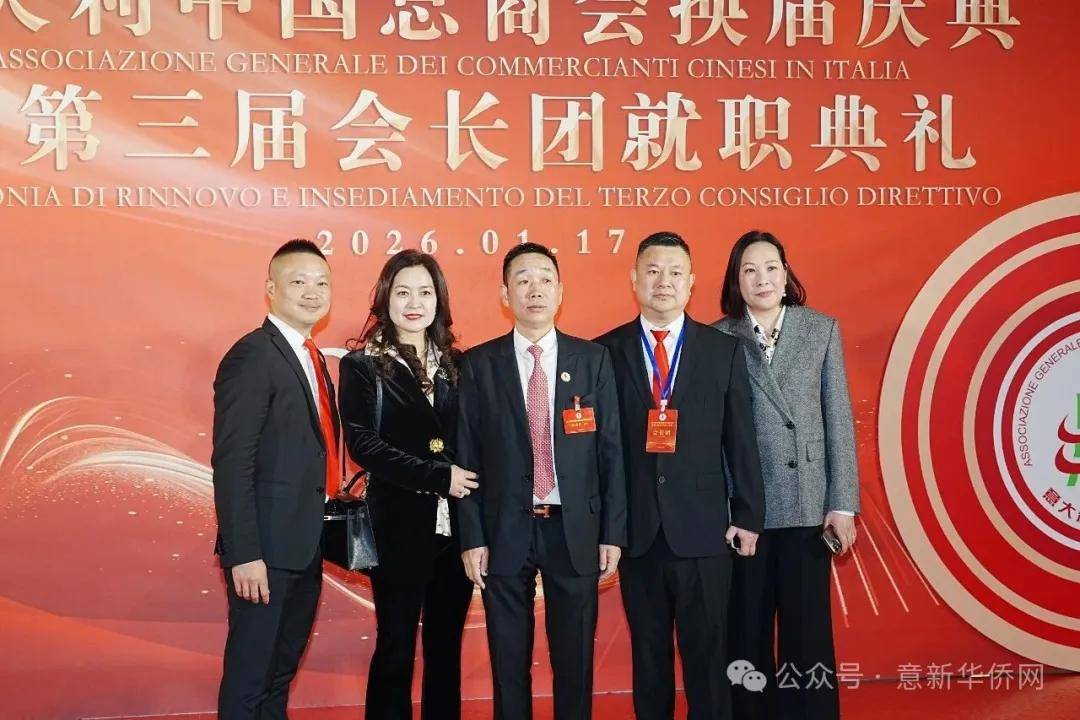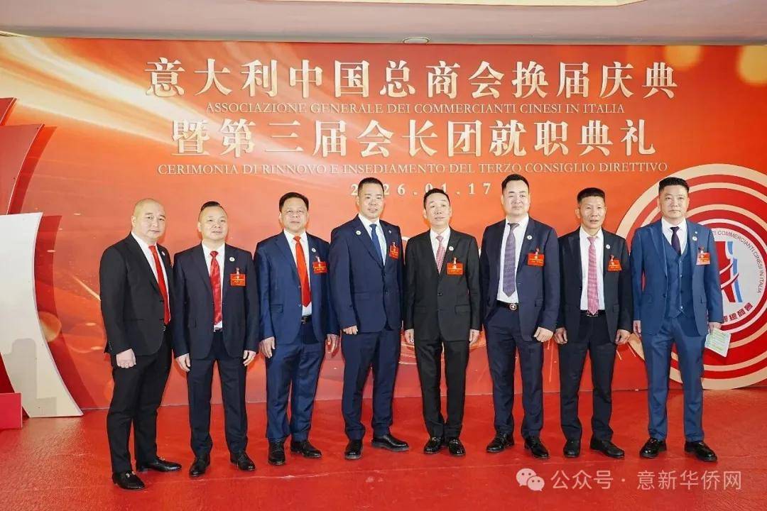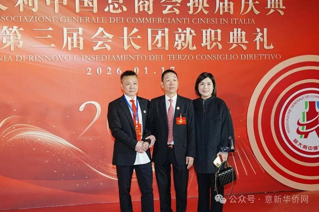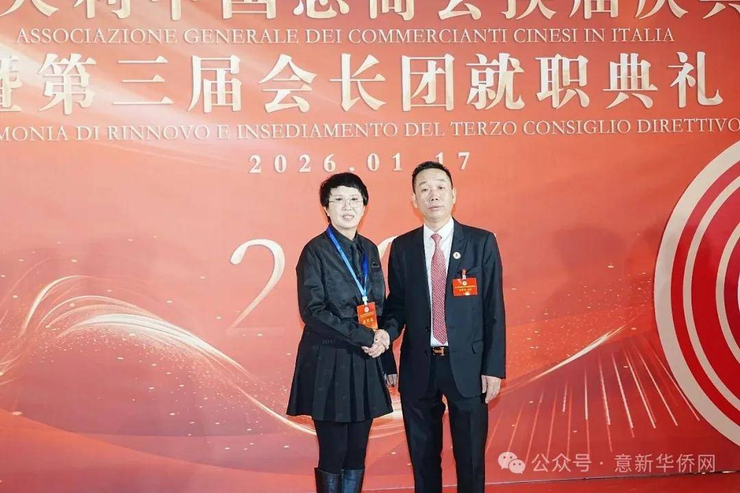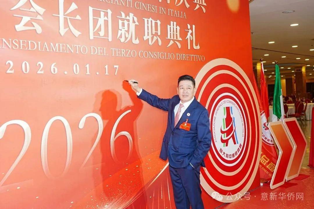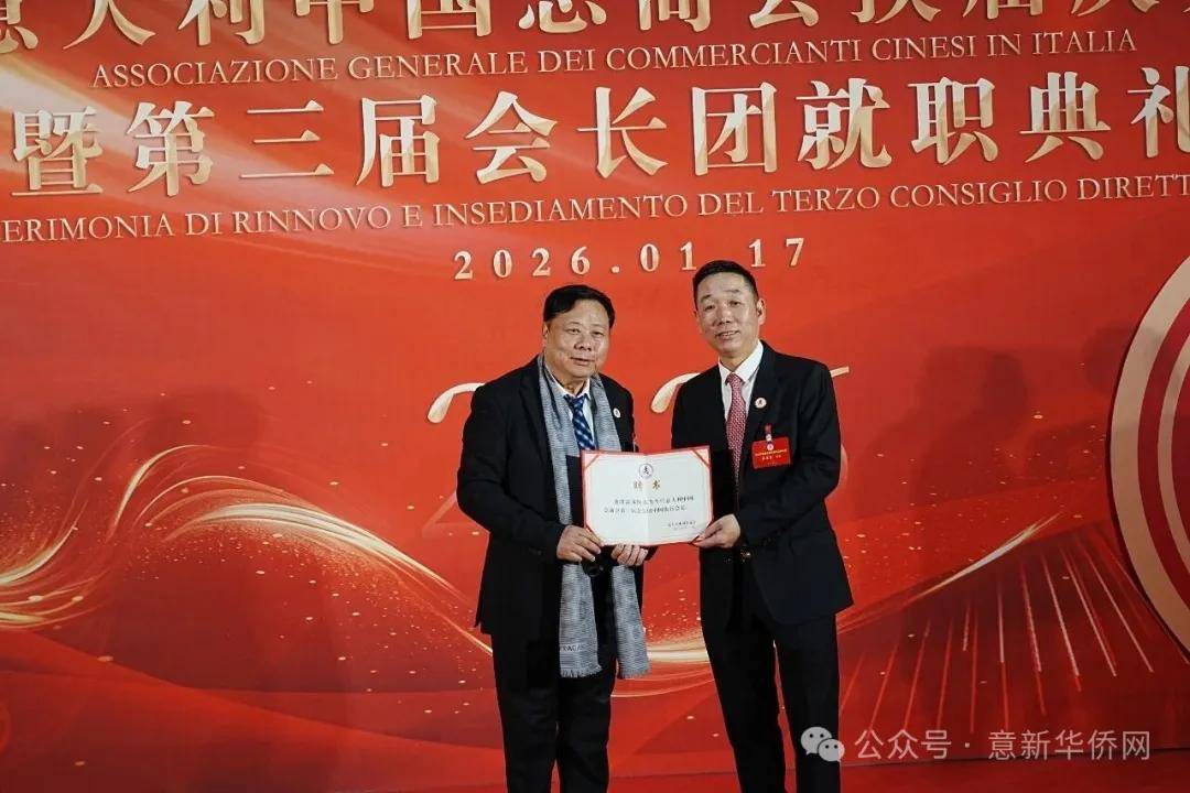 意大利新华时报金荣军报道:2026年1月17日,意大利中国总商会在罗马万豪大酒店举行换届庆典大会,林建芬先生荣任第三届会长。中国驻意使馆牟俊宏主任、刘佳鑫领事,罗马市市长顾问Marco Pacciotti 、意大利政府官员 Tiziana Biolghini 等意大利政要应邀出席活动。来自中国驻意使馆领区、米兰领区、佛罗伦萨领区的侨团侨领,以及来自欧洲多国的侨领代表,与会长团成员及家属、青年委员等共500余人齐聚一堂,共同见证这一重要时刻。