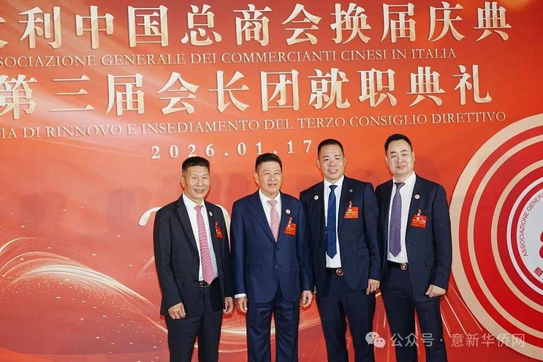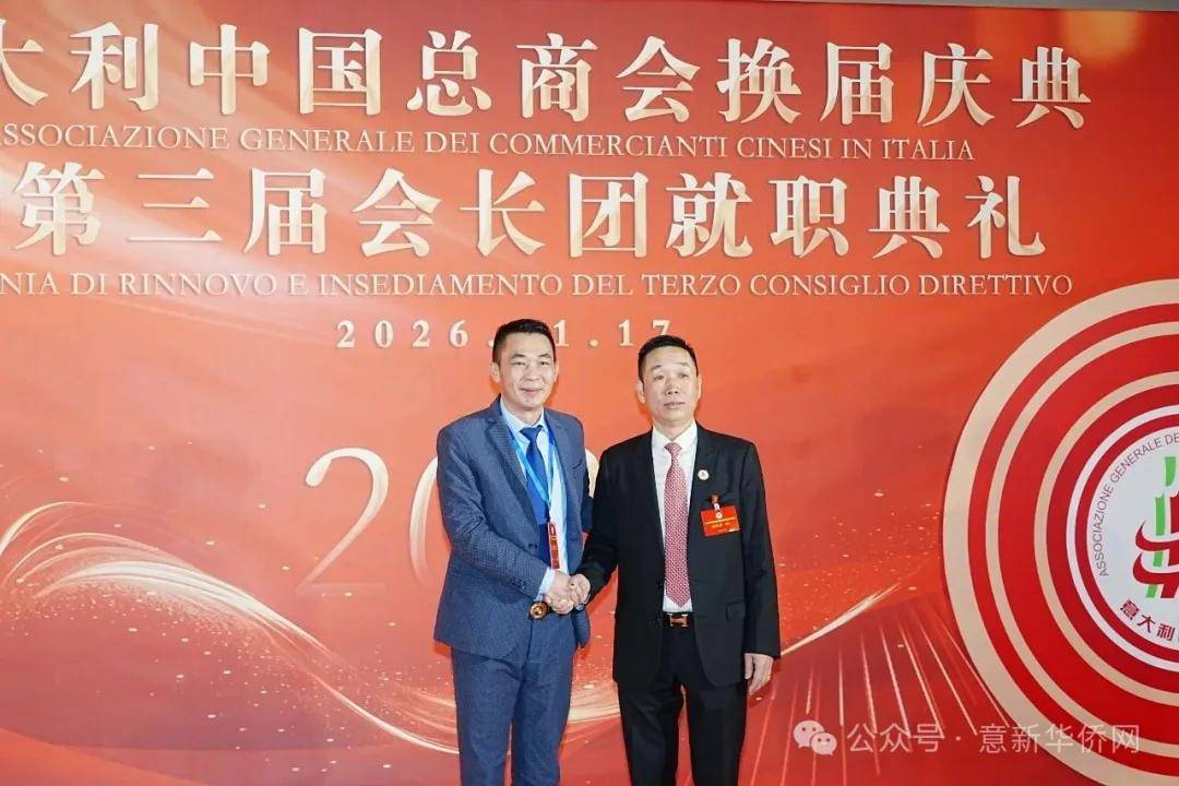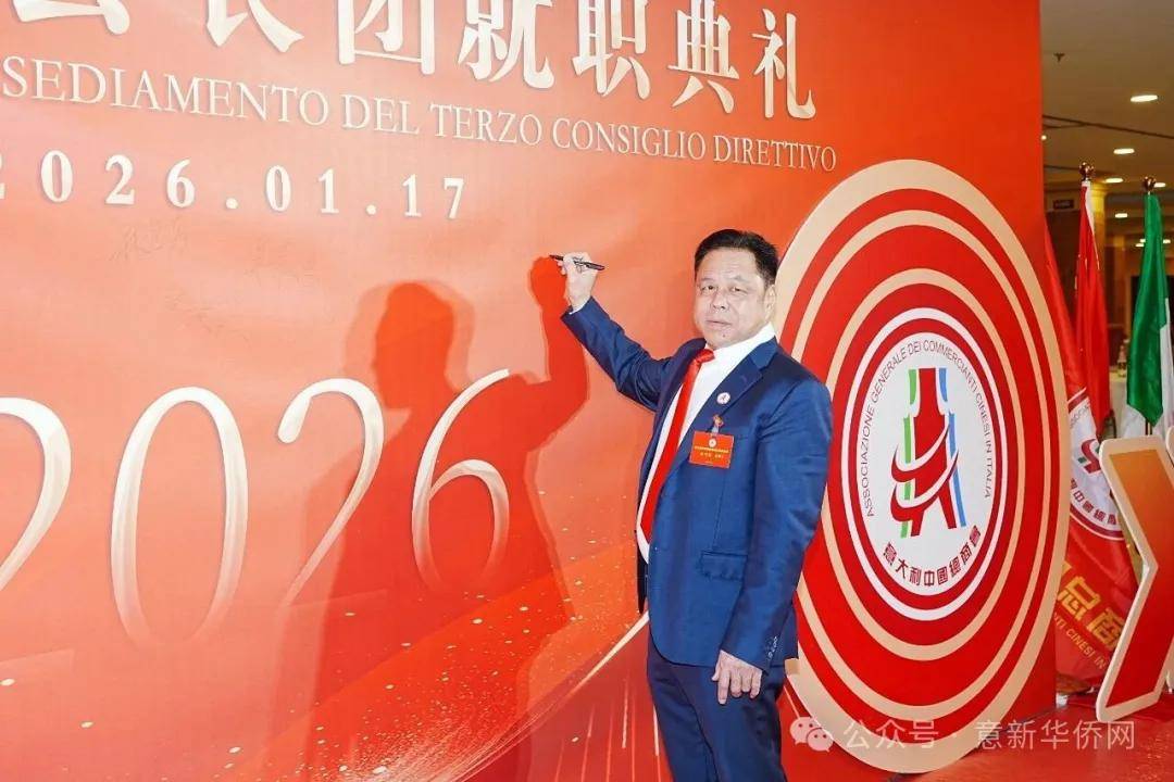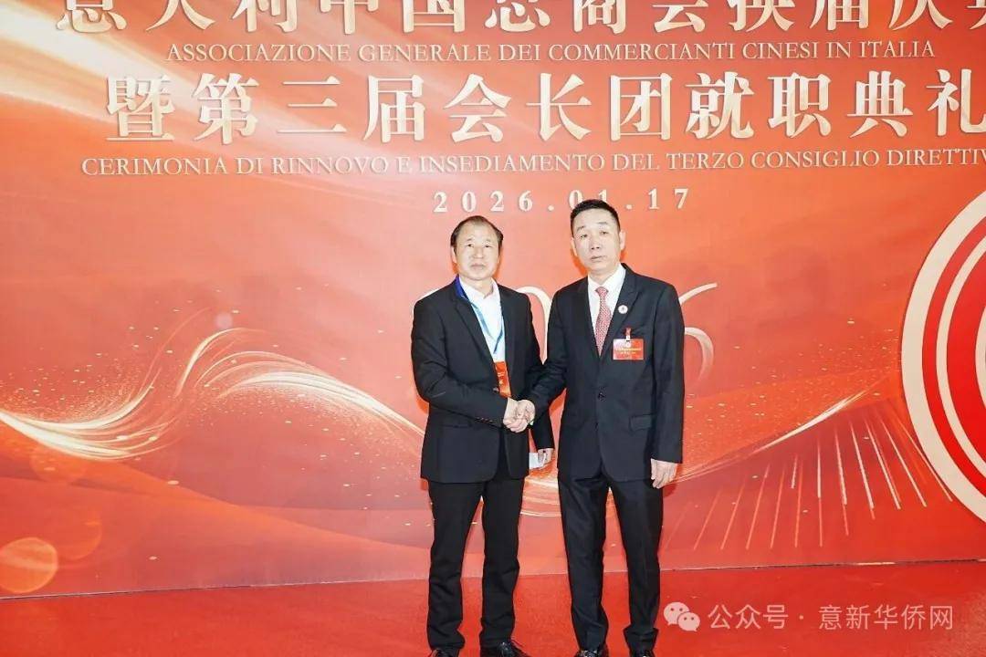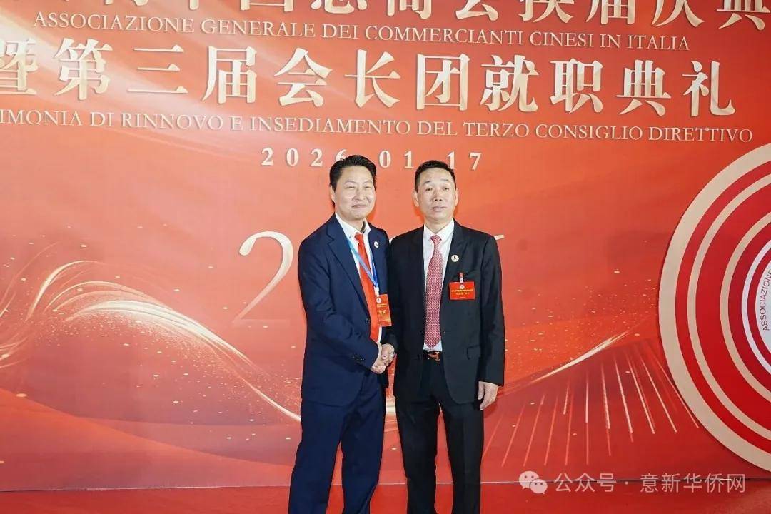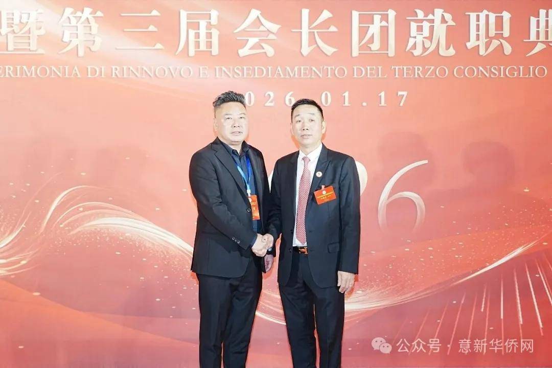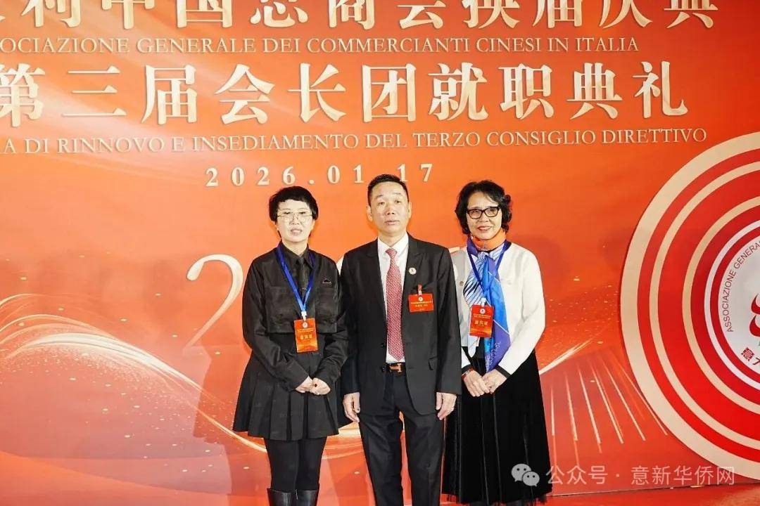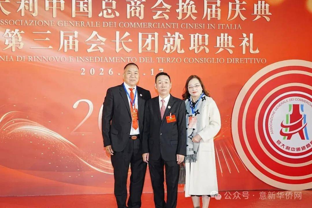 意大利新华时报金荣军报道:2026年1月17日,意大利中国总商会在罗马万豪大酒店举行换届庆典大会,林建芬先生荣任第三届会长。中国驻意使馆牟俊宏主任、刘佳鑫领事,罗马市市长顾问Marco Pacciotti 、意大利政府官员 Tiziana Biolghini 等意大利政要应邀出席活动。来自中国驻意使馆领区、米兰领区、佛罗伦萨领区的侨团侨领,以及来自欧洲多国的侨领代表,与会长团成员及家属、青年委员等共500余人齐聚一堂,共同见证这一重要时刻。