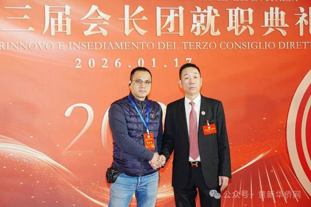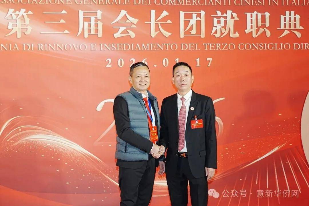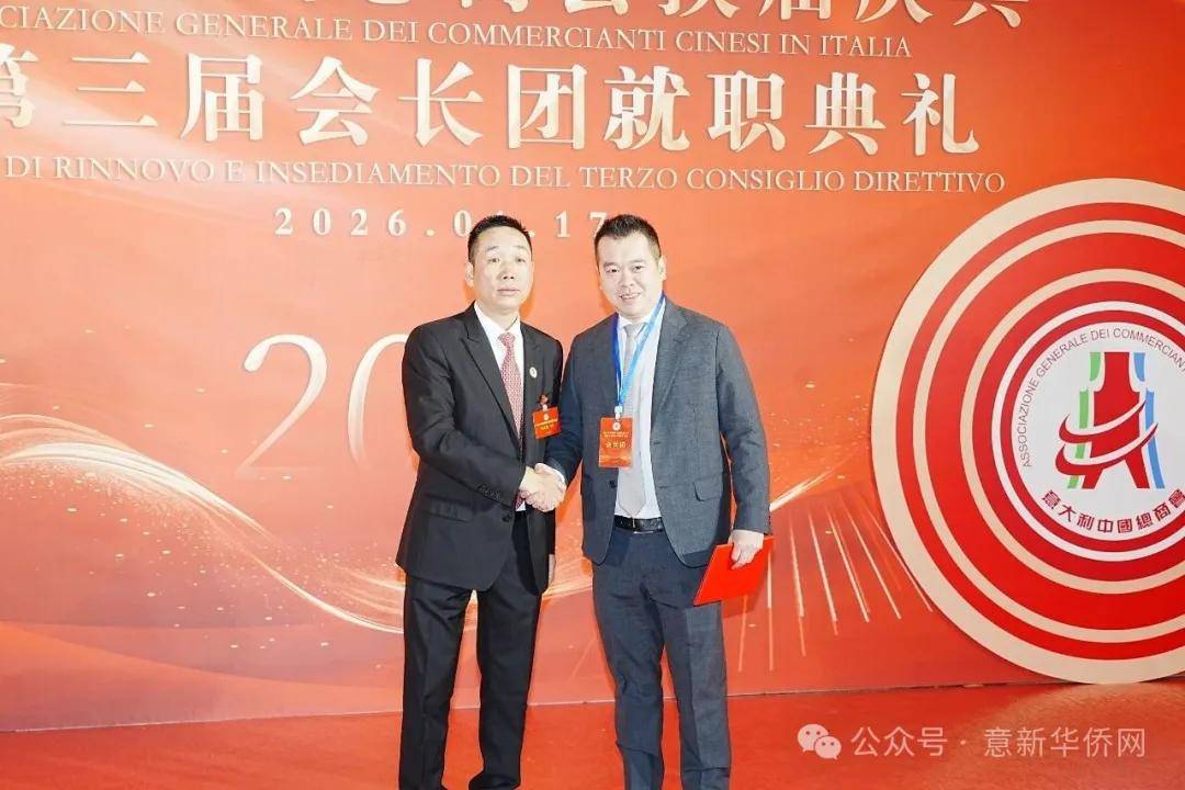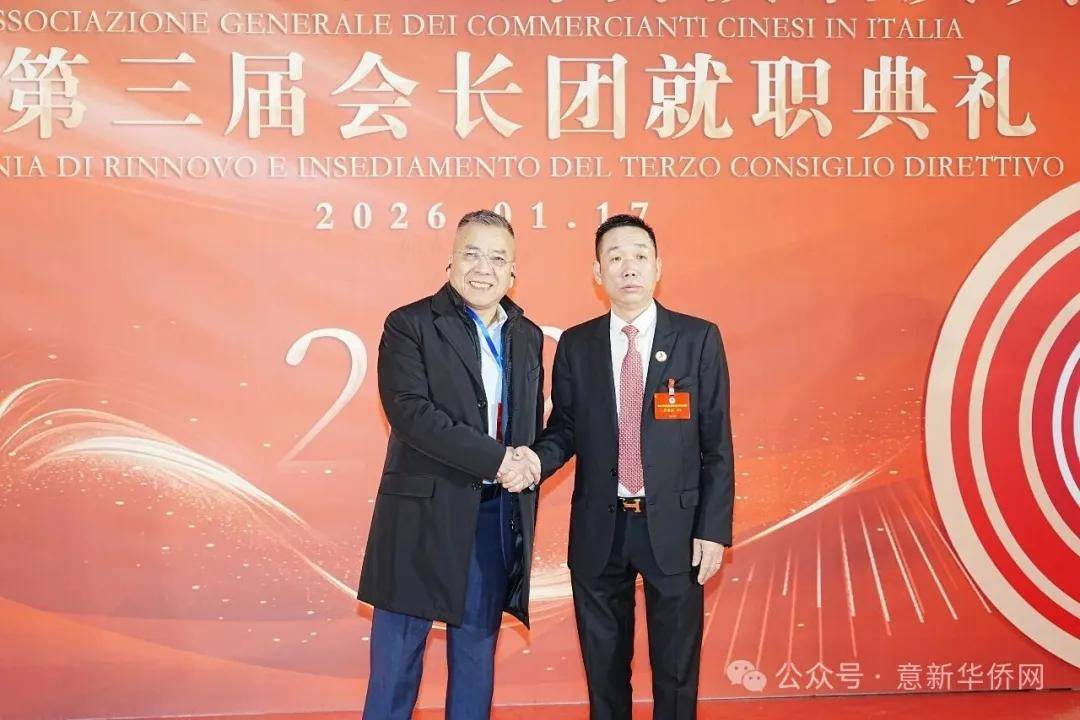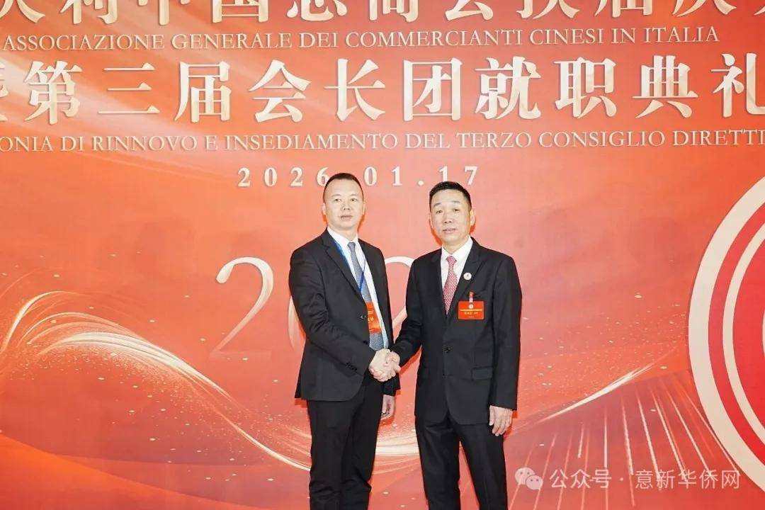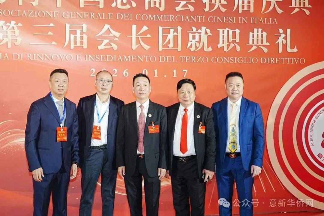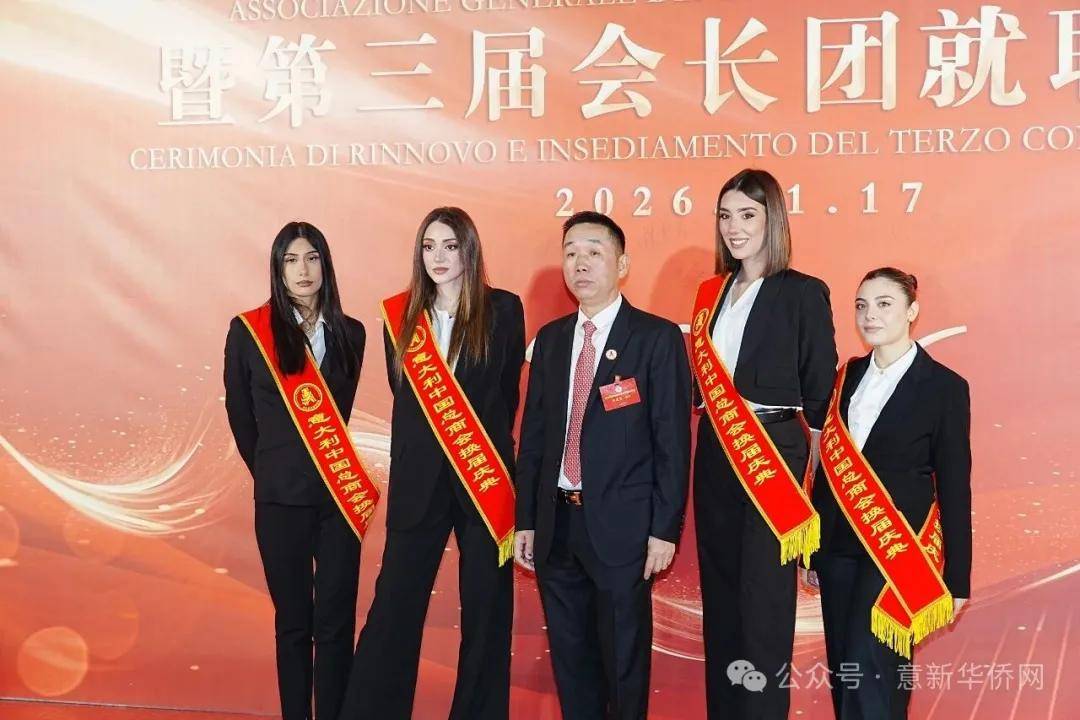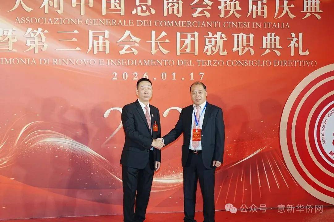 意大利新华时报金荣军报道:2026年1月17日,意大利中国总商会在罗马万豪大酒店举行换届庆典大会,林建芬先生荣任第三届会长。中国驻意使馆牟俊宏主任、刘佳鑫领事,罗马市市长顾问Marco Pacciotti 、意大利政府官员 Tiziana Biolghini 等意大利政要应邀出席活动。来自中国驻意使馆领区、米兰领区、佛罗伦萨领区的侨团侨领,以及来自欧洲多国的侨领代表,与会长团成员及家属、青年委员等共500余人齐聚一堂,共同见证这一重要时刻。