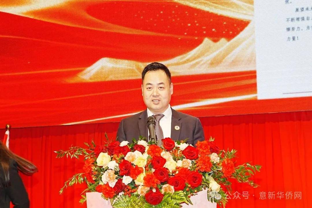 中国驻意使馆牟俊宏主任代表中国驻意大利使馆对总商会成功换届、林建芬先生担任新一届会长表示热烈祝贺,同时也对黄智晓会长在任期间的辛勤付出表示感谢。意大利中国总商会是旅意华商侨团组织的杰出代表。成立近30年来,尤其是近10年来,在陈正溪、黄智晓等会长率领下,总商会成员秉持“胸怀家国、兼济天下”的情怀与“合作发展、开放共赢”的精神,以侨为桥、以商聚力,团结服务领区华商,在推动双边经贸合作、促进两国地方和企业交流方面作出了重要贡献。希望新一届会长团,不忘初心,团结服务华商;着眼后继有人,加强新生代华商培养。促进在意华商融入发展,讲好中国故事。意大利是在座各位华商第二故乡。大家要遵守当地法律法规,广交地方政府、各级部门朋友,主动促进融入。同时,要注重树立新时代大国侨商形象,讲好中国改革开放的故事,讲好中意友好的故事,增进意社会各界对华了解。