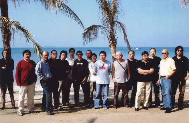 2006年2月,上海抽象艺术高峰论坛在海南三亚举行,左起:王劼音、许德民、周长江、薛松、黄渊青、陈墙、申凡、孙良、胡伟达、朱其、王远、陆云华、卢治平、李旭、赵渭凉、陆志德。