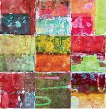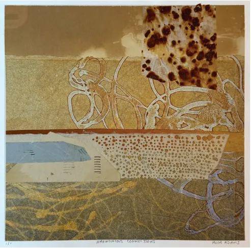 胡萨·亚当斯 《谐韵联结》混合媒介拼贴 15×15×0.75 英寸