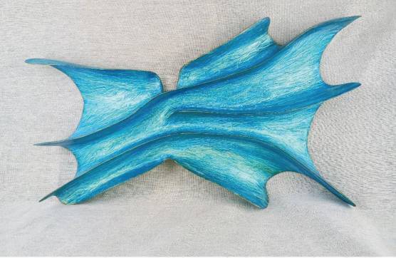 德里克·本科莫《逐浪舞者贰号》14 X 24 X 3 英寸 雕刻、诺福克岛松木、矿物颜料、金箔