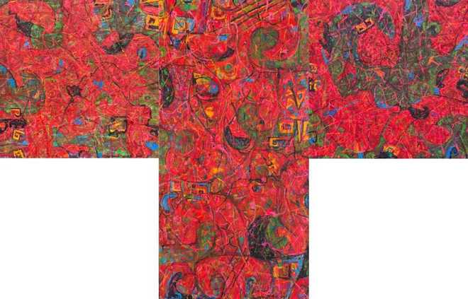 许德民《抽天开象》 布上油画 100X100 cmX2+180X90cm 2025