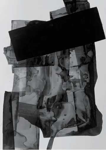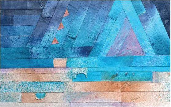杰·杰·韦斯特《交错洋流 No. 4》 再生纸、茶包包装、染料、丙烯颜料 15 X 24 X 1.5 英寸
