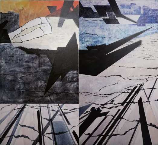 季潮波 《视觉乾坤-交错》丙稀综合材料 150x100cm