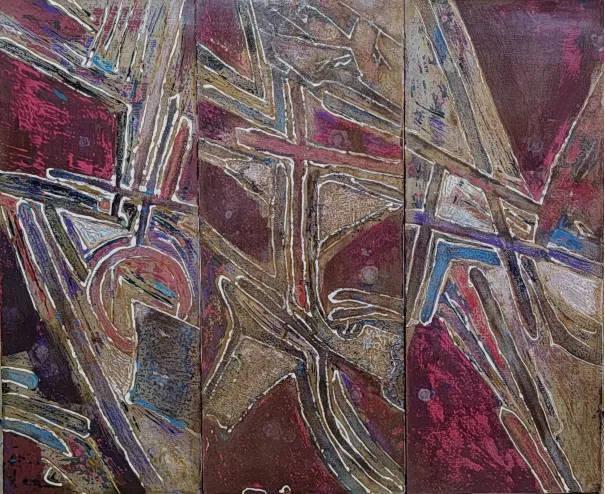 查国钧 《混沌世界》 积淀延伸 2 立体三联 综合材料 165X 88cm +150X 70cm