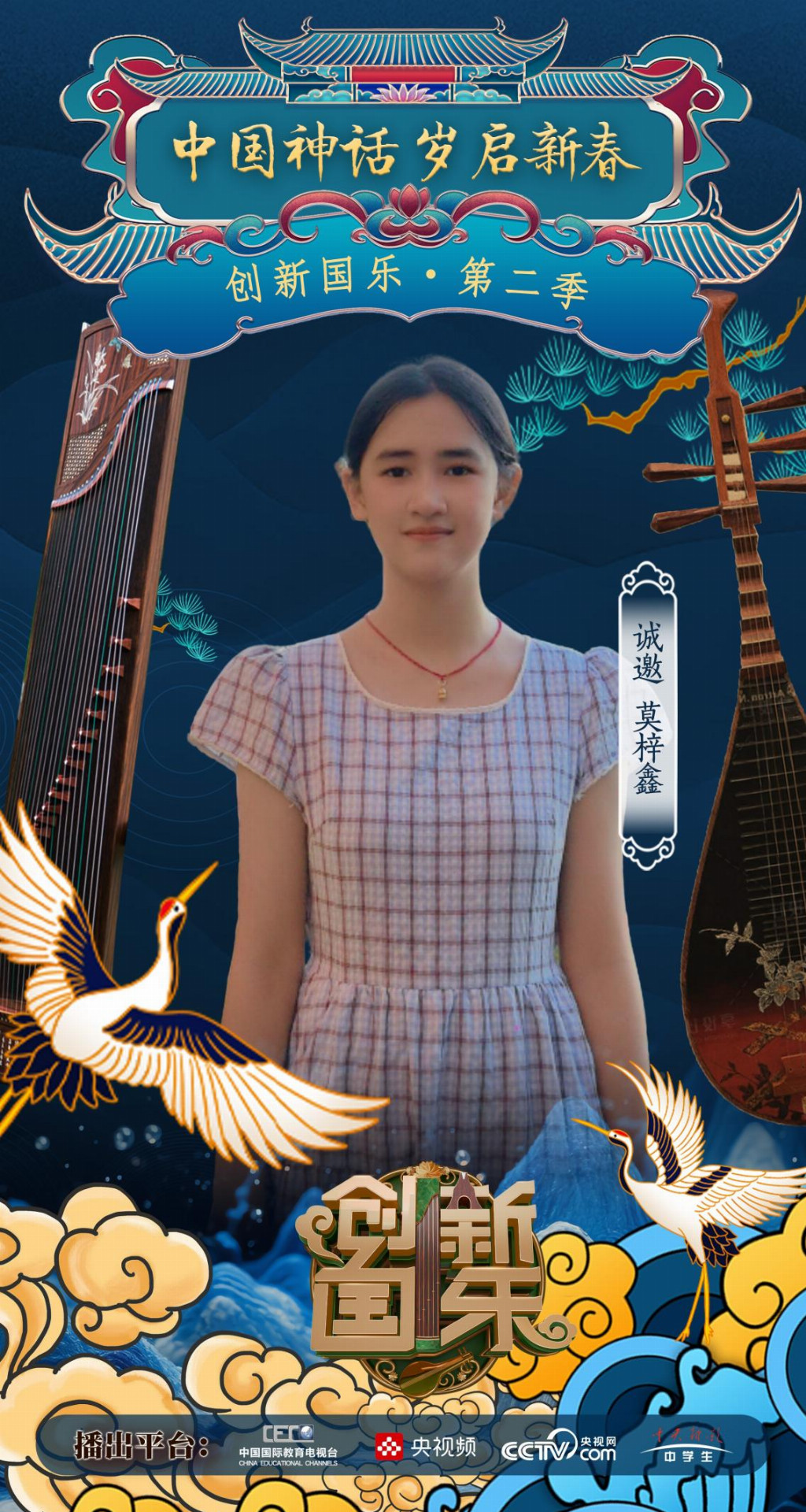 为持续推动中华优秀传统文化的创造性转化与创新性发展,打造具有时代气息的国乐精品,创新国乐第二季“中国神话 岁启新春”大型原创国乐盛典2026年2月8日在北京首钢园隆重启幕!在此,我们特别向学员莫梓鑫 发出正式演出邀请,期待她以更加成熟的技艺与表现力,与我们共同演绎华夏神话的壮丽诗篇。