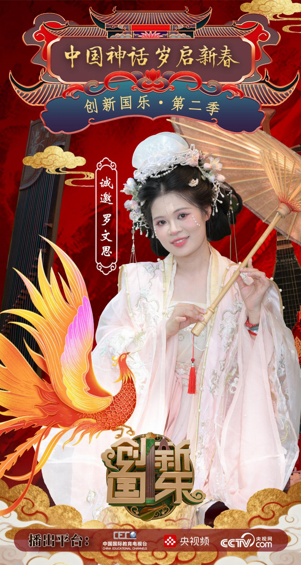 为持续推动中华优秀传统文化的创造性转化与创新性发展,打造具有时代气息的国乐精品,创新国乐第二季“中国神话 岁启新春”大型原创国乐盛典2026年2月8日在北京首钢园隆重启幕!在此,我们特别向学员罗文思发出正式演出邀请,期待她以更加成熟的技艺与表现力,与我们共同演绎华夏神话的壮丽诗篇。