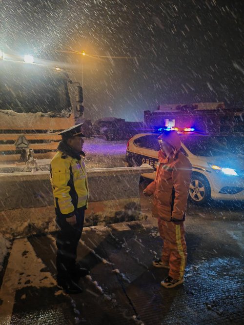 1月20日凌晨,针对S69济徐高速公路路面积雪情况,江苏省交通综合执法局连徐支队第五大队协同徐济养管中心实时动态调整除雪防滑方案,选择沛县站至郑集收费站段实施“双轮驱动”作业,3辆铲雪车+1辆综合洒布车打头,另3台平地机紧随其后实施尾雪清理(平地机铲雪相对于铲车要彻底),大队执法人员现场和高速交警做好压车保障!另外沛县站至丰县北段实施吹雪车作业。 (张先乐、刘磊)