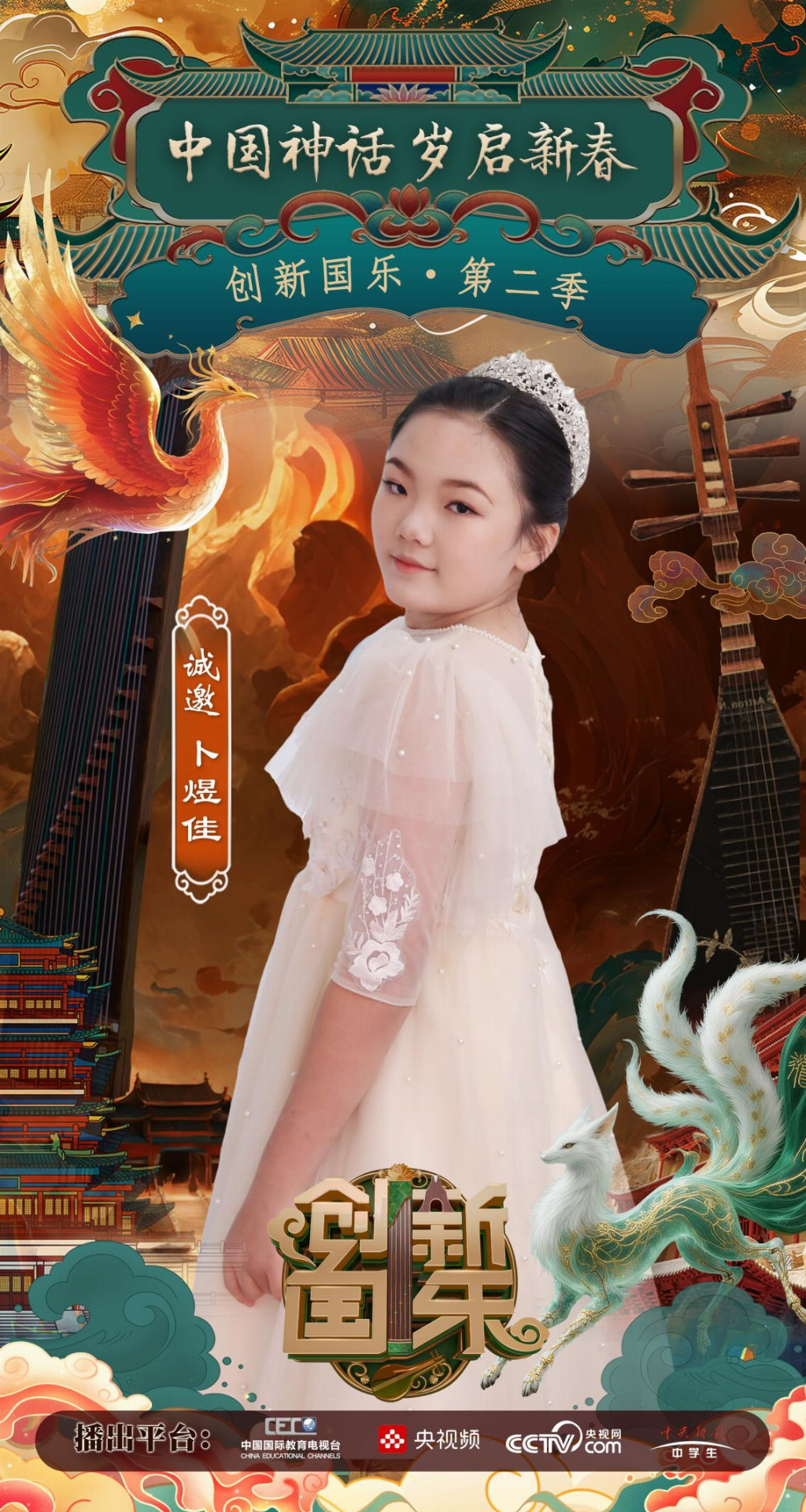为持续推动中华优秀传统文化的创造性转化与创新性发展,打造具有时代气息的国乐精品,创新国乐第二季“中国神话 岁启新春”大型原创国乐盛典2026年2月8日在北京首钢园隆重启幕!在此,我们特别向学员卜煜佳发出正式演出邀请,期待她以更加成熟的技艺与表现力,与我们共同演绎华夏神话的壮丽诗篇。