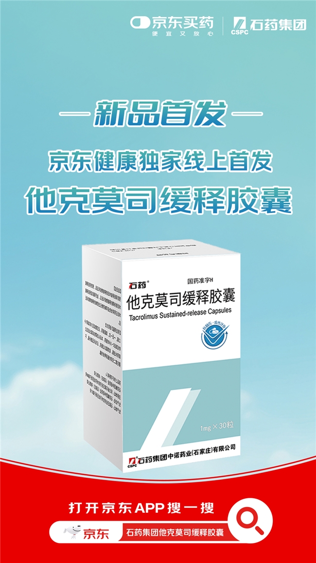 1月19日,石药集团旗下新药他克莫司缓释胶囊在京东健康全网首发。该药物适用于预防肾脏及肝脏移植术后的移植物排斥反应,能够为器官移植术后患者提供了更加便捷、平稳、安全的免疫抑制治疗方案。京东健康将充分发挥“新特药全网首发第一站”的能力优势,加速前沿治疗选择与患者间的连接,助力器官移植患者实现更优的长期康复管理。