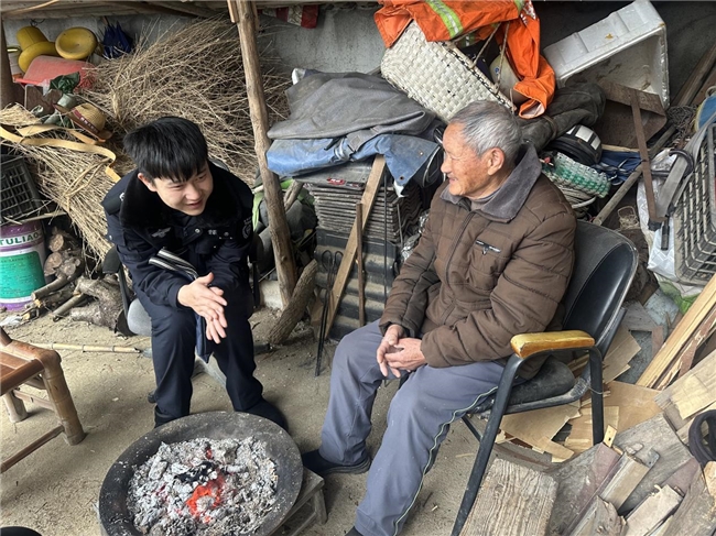 极端天气下,保障基本生活与心灵慰藉同样重要。对于行动不便、出行困难的群众,网格员们主动化身“代办员”和“配送员”。除了代购生活必需品和药品,网格员们还密切关注老人们的身体状况,为他们测量血压,并将自己的联系方式设置为老人手机的紧急呼叫号码。这份关怀,更细腻地延伸至精神层面。长时间的寒冷与孤寂容易让老人们心情低落,网格员们在走访时,总会多陪他们聊聊天,讲讲村里的新鲜事,听听他们的唠叨。“看到你们来,我心里就踏实、就暖和。”独居的黄爷爷握着网格员的手,眼里泛着泪光。一句温暖的问候,一段耐心的陪伴,足以驱散冬日的阴霾,带来直抵心灵的慰藉。