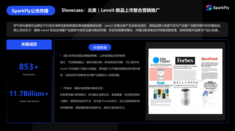 在新品上市前夕,团队集中火力于媒体攻坚。钛动科技围绕新品突破性的“全屋沉浸式静净体验”概念,策划了深度传播包。通过精准的媒体关系维护与热点借势,钛动科技成功在北美主流消费科技及生活类媒体中引爆话题。项目累计斩获超过853篇次优质媒体 placements,创造了逾117亿次媒体印象。这一阶段,Levoit成功从“又一家空气净化器公司”,跃升为被主流舆论场认证的“家居健康空气赛道的重要定义者”。