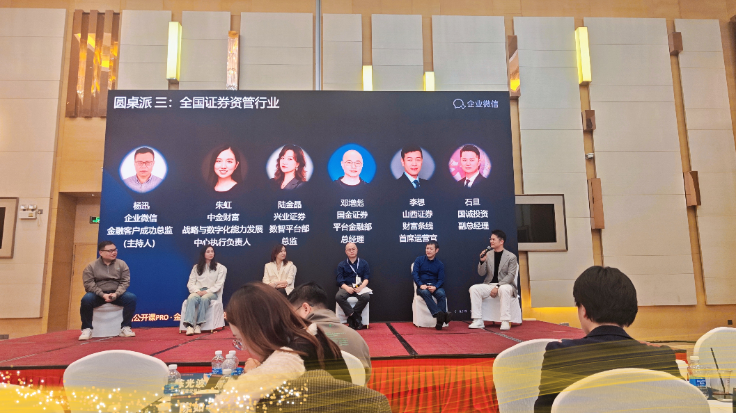 1月15日,深圳市国诚投资咨询有限公司(简称“国诚投顾”)受邀参加2026企业微信公开课PRO,国诚投顾副总经理石旦作为代表在“全国证券资管行业”圆桌论坛环节进行交流发言,分享了公司在企业微信数字化建设中的实践经验与前瞻思考,并与行业伙伴共同探索数字化工具如何深度赋能证券投顾服务与客户运营的可行路径。