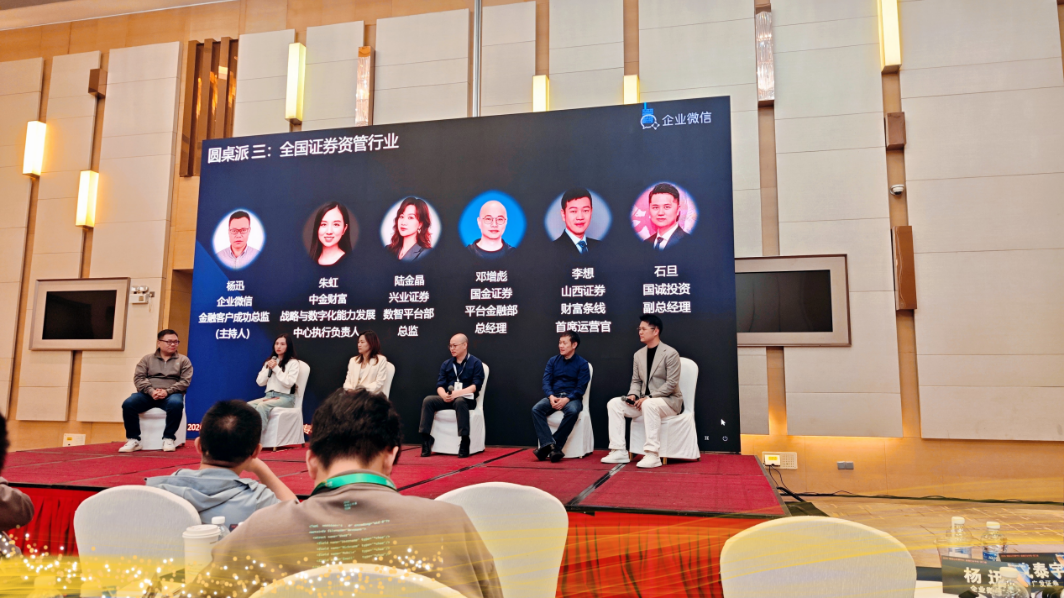 合规管理是证券投顾行业的生命线,石旦强调了国诚投顾在合规方面的严格把控。公司通过会话存档等功能,将合规要求内嵌于每个交互环节,强化全流程合规监控。无论是投顾人员与客户的日常沟通,还是重要的业务洽谈,所有会话内容都会被完整记录并存档。同时,企微还是公司内部高效运作的“数字中枢”,里面集成了知识库和协作功能,能让大家能快速查找信息、跟进服务。此外,国诚投顾还积极尝试更多智能服务,真正让数字化能力为业务创造更多价值。
