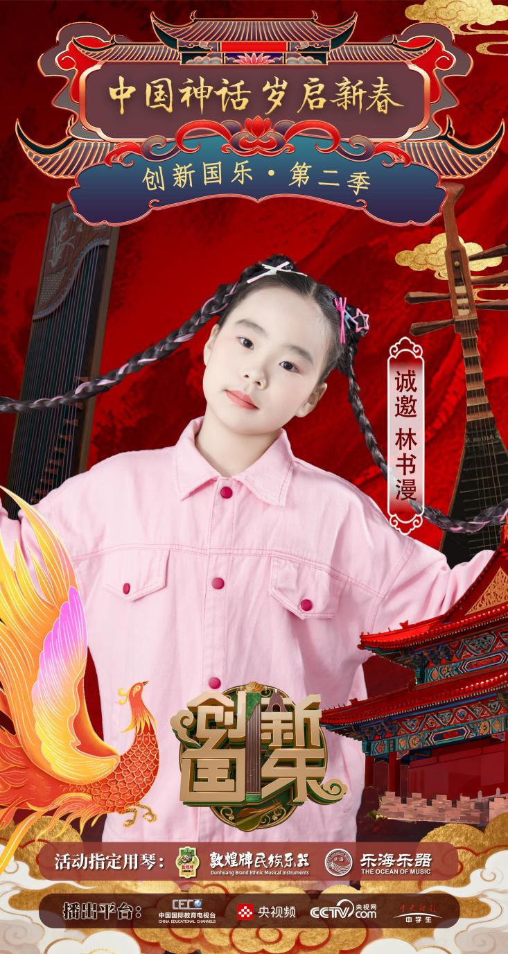 为持续推动中华优秀传统文化的创造性转化与创新性发展,打造具有时代气息的国乐精品,创新国乐第二季“中国神话 岁启新春”大型原创国乐盛典2026年2月8日在北京首钢园隆重启幕!在此,我们特别向学员林书漫发出正式演出邀请,期待她以更加成熟的技艺与表现力,与我们共同演绎华夏神话的壮丽诗篇。