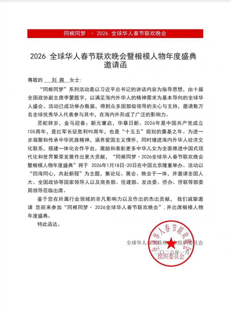 关于应邀以特邀嘉宾身份出席“同根同梦·2026全球华人春节联欢晚会暨楷模人物年度盛典”的复函