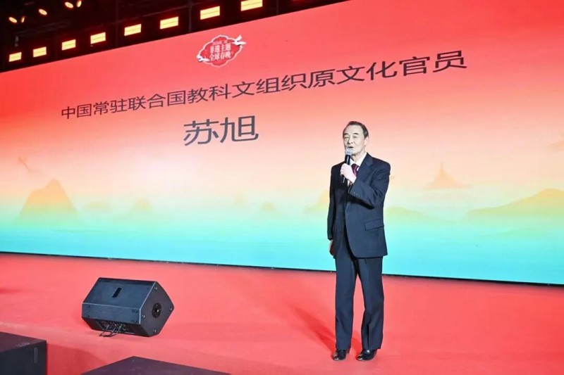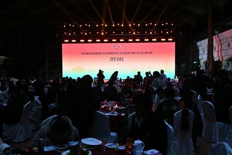 晚宴现场,常驻联合国教科文组织原文化官员苏旭、联合国教科文组织世界非物质文化遗产保护发展中心主席刘勇等重量级嘉宾出席并致辞。苏旭先生曾担任中国常驻联合国教科文组织文化代表,主要负责为我国申报"世界文化遗产名录"项目和"人类非遗名录"项目,为我国在这两个名录项目数量排名世界第一做出了重要贡献。
