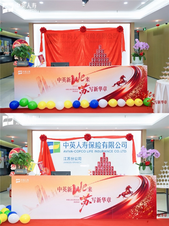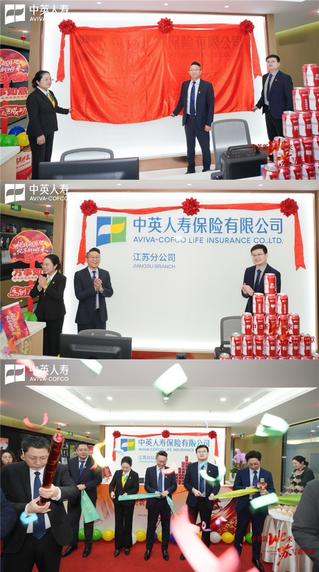 2026年1月19日,中英人寿江苏分公司举办“中英新We来,苏写新华章”乔迁庆典,江苏分公司总经理贺武先生、副总经理兼银行保险职能单元主管孟令超先生、总经理助理兼经代营销职能单元主管黄美女士、个人营销职能单元主管沈震东先生、团体保险职能单元渠道主管王立斌先生、分公司各级主管与全体员工共同参加了本次仪式。
