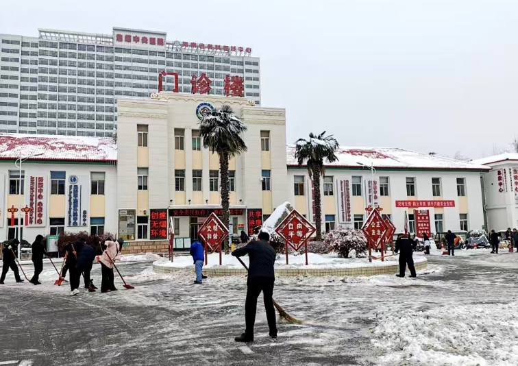 1月19日,一场强降雪席卷焦作,银装素裹的美景之下,也给来院就诊的患者及家属带来诸多不便和安全隐患。为保障群众就医安全,1月20日一大早,焦煤集团中央医院领导班子成员及机关、后勤的干部职工开展了扫雪除冰活动,用实干担当保障患者医路畅通、守护患者就医平安。
