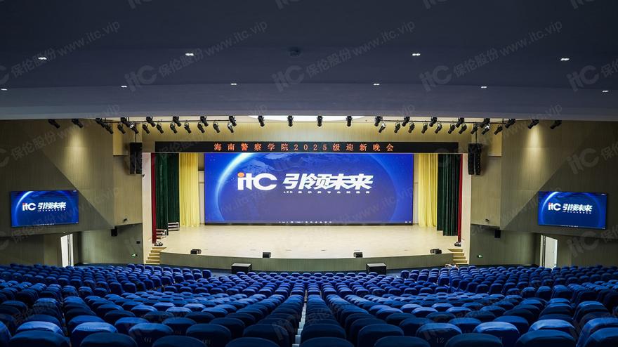海南警院秉承“忠清为正,文武以成”的校训精神,定位为服务海南自贸港建设,以培养现代警务人才和高素质应用型法学人才为目标。itc紧密贴合学院发展思路,为学院高质量人才培养提供集声光影综合管理平台、LED显示屏、专业扩声、舞台灯光、舞台机械、数字会议、视频会议、中控矩阵等系统于一体的数字化音视频解决方案,为庄严的千人会堂、多功能阶梯教室及学术报告厅装上了“智慧大脑”,以科技之力助推高质量警务人才培养。