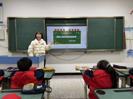 2026年1月20日,为给学生营造安全、和谐的学习环境,江油市胜利街小学1.3班积极开展了管制刀具和危险物品排查活动。