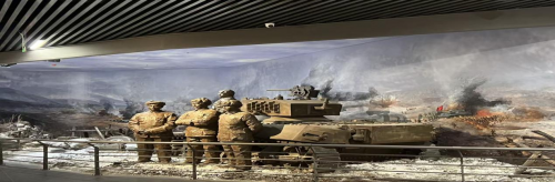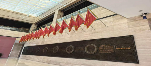 上午,实践团首站来到位于河东区军部街的华东野战军总部旧址暨新四军军部旧址纪念馆。这里是新四军最后一个军部驻地,更是华东军区、华东野战军诞生地,解放战争初期华东党政军领导中心所在地。步入馆内,历史的气息扑面而来。在“战略决策厅”,一面巨大的孟良崮战役沙盘地形图吸引了所有人的目光。讲解员详细还原了1947年那场惊心动魄的决战:面对国民党军全副美械装备的整编第74师,华东野战军以“百万军中取上将首级”的气魄,硬是在敌人重兵集团中实施中心突破,最终全歼这支“王牌军”。望着展柜里锈迹斑斑的作战器具、墙上定格烽火岁月的老照片,听着讲解员细说陈毅、粟裕等将帅在此彻夜不眠研判战局,战士们抱着“不破敌军誓不还”的决心奔赴前线,沂蒙百姓推着独轮车、带着自家口粮千里支前的往事,成员们心底对革命战士的敬仰之情如潮水般翻涌,滚烫而真切,在胸腔中久久激荡。